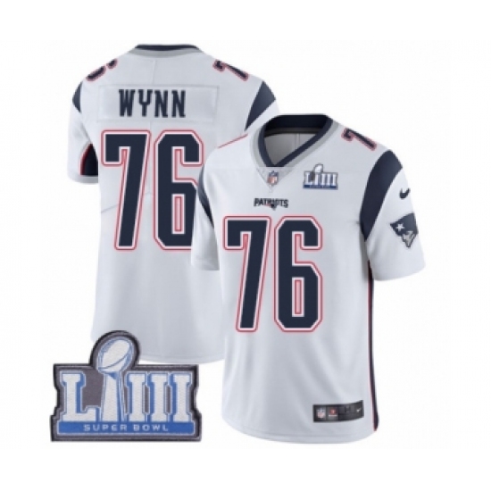 Men's Nike New England Patriots #76 Isaiah Wynn White Vapor Untouchable Limited Player Super Bowl LIII Bound NFL Jersey