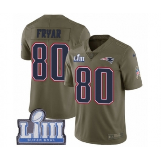 Men's Nike New England Patriots #80 Irving Fryar Limited Olive 2017 Salute to Service Super Bowl LIII Bound NFL Jersey