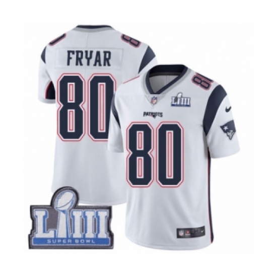 Men's Nike New England Patriots #80 Irving Fryar White Vapor Untouchable Limited Player Super Bowl LIII Bound NFL Jersey
