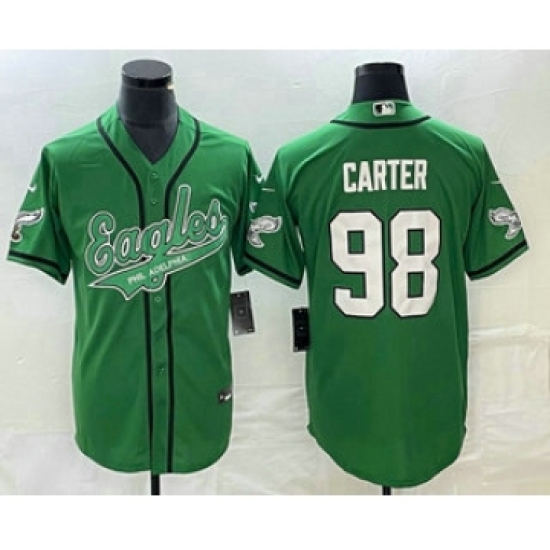 >Men's Nike Philadelphia Eagles #98 Jalen Carter Green Cool Base Stitched Baseball Jersey