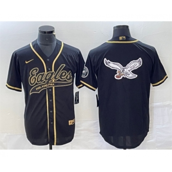>Men's Nike Philadelphia Eagles Black Gold Team Big Logo Cool Base Stitched Baseball Jersey