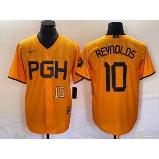 Men's Nike Pittsburgh Pirates #10 Bryan Reynolds Number Gold 2023 City Connect Stitched Jersey2
