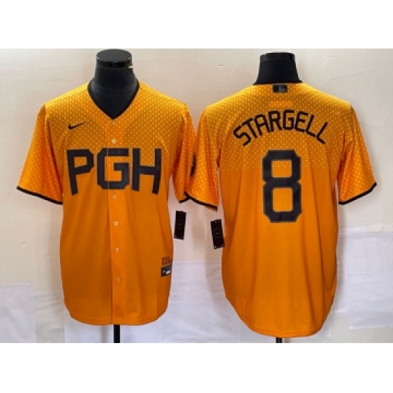 Men's Nike Pittsburgh Pirates #8 Willie Stargell Gold 2023 City Connect Stitched Jersey 1