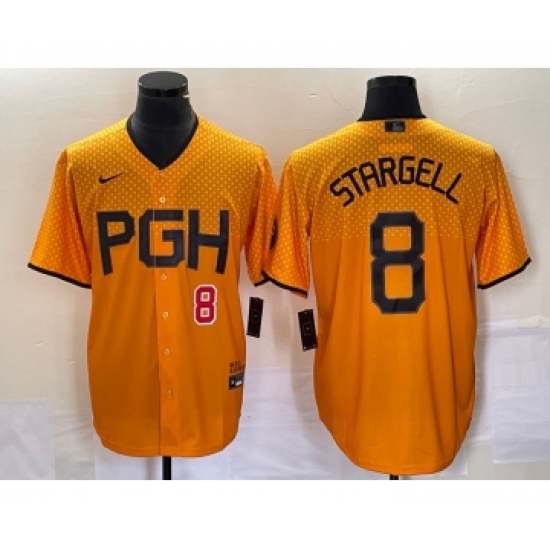 Men's Nike Pittsburgh Pirates #8 Willie Stargell Number Gold 2023 City Connect Stitched Jersey
