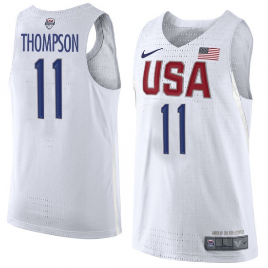 Men's Nike Team USA #11 Klay Thompson Swingman White 2016 Olympic Basketball Jersey