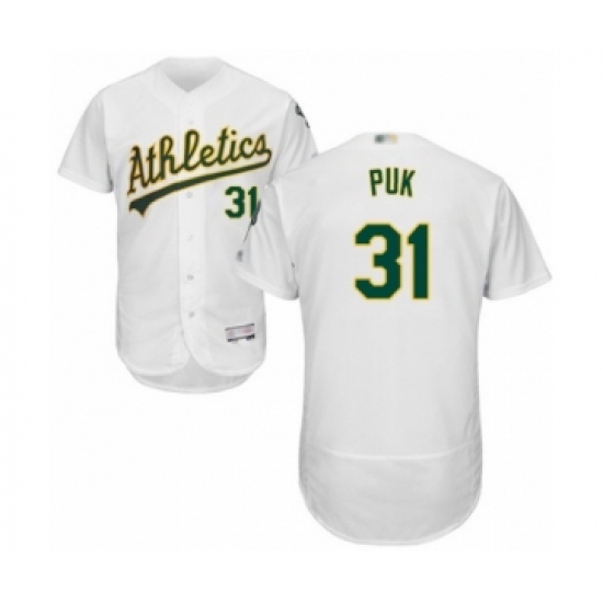 Men's Oakland Athletics #31 A.J. Puk White Home Flex Base Authentic Collection Baseball Player Jersey