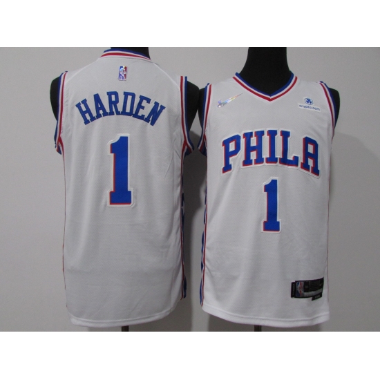 Men's Philadelphia 76ers #1 James Harden White 75th Anniversary Association Edition Swingman Stitched Jersey