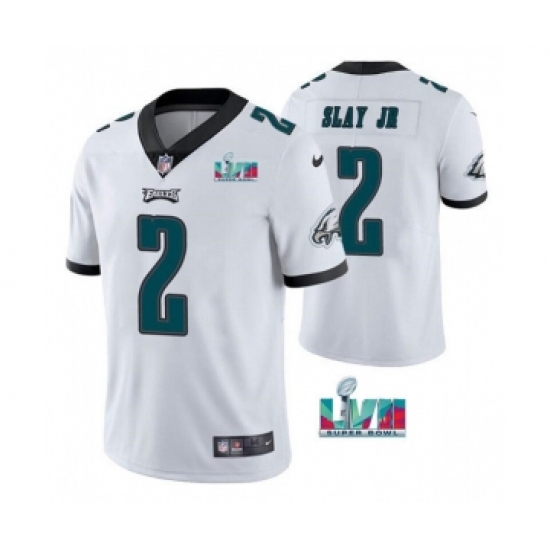 >Men's Philadelphia Eagles #2 Darius Slay JR White Super Bowl LVII Patch Vapor Untouchable Limited Stitched Jersey