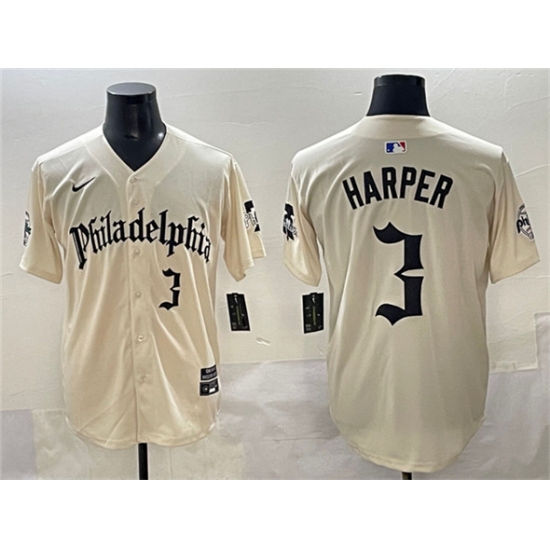 >Men's Philadelphia Phillies #3 Bryce Harper Cream Gothic Vapor Limited Stitched Jersey