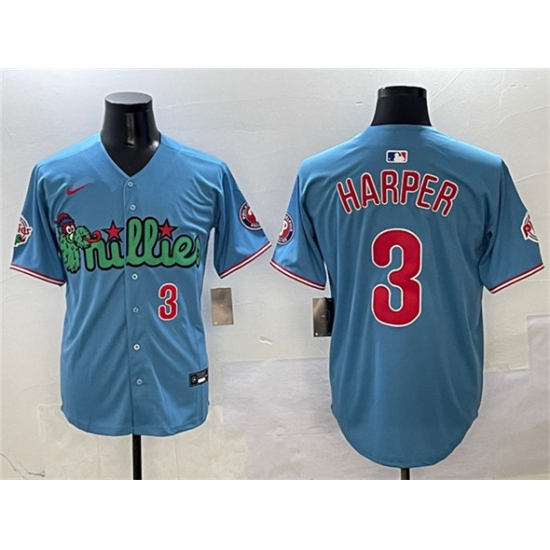 Men's Philadelphia Phillies #3 Bryce Harper Number Blue 2024 City Connect Limited Stitched Jersey
