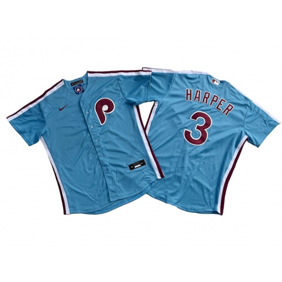 >Men's Philadelphia Phillies #3 Bryce Harper Nike Light Blue Authentic Alternate Baseball Jersey