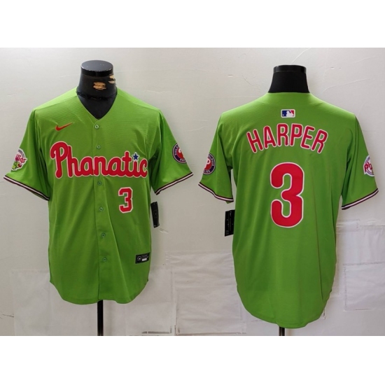 Men's Philadelphia Phillies #3 Bryce Harper Number Green With Stitched Cool Base Nike Jersey