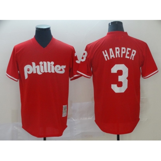 Men's Philadelphia Phillies #3 Bryce Harper Red Cool Base Stitched Baseball Jersey