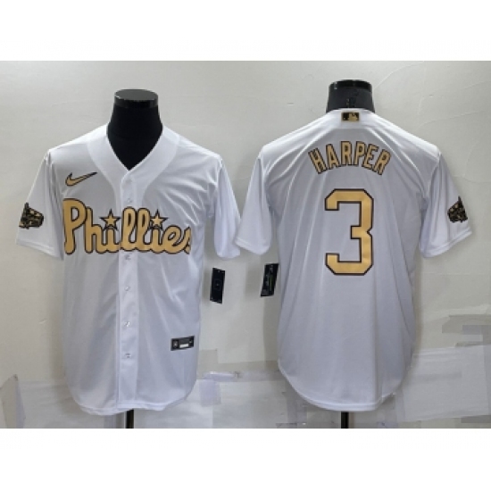 Men's Philadelphia Phillies #3 Bryce Harper White 2022 All Star Stitched Cool Base Nike Jersey