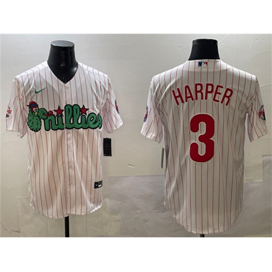 Men's Philadelphia Phillies #3 Bryce Harper White Phanatic Cool Base Stitched Jersey