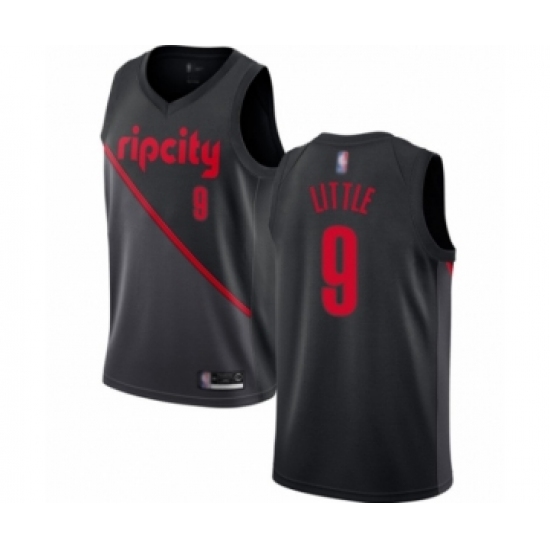 >Men's Portland Trail Blazers #9 Nassir Little Authentic Black Basketball Jersey - 2018 19 City Edition