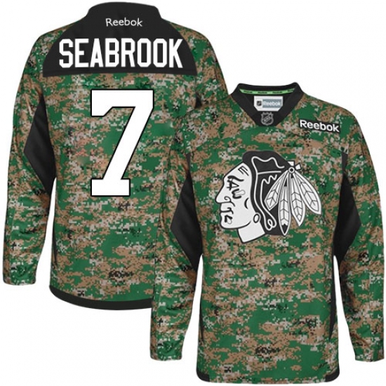 Men's Reebok Chicago Blackhawks #7 Chris Chelios Authentic Camo Veterans Day Practice NHL Jersey