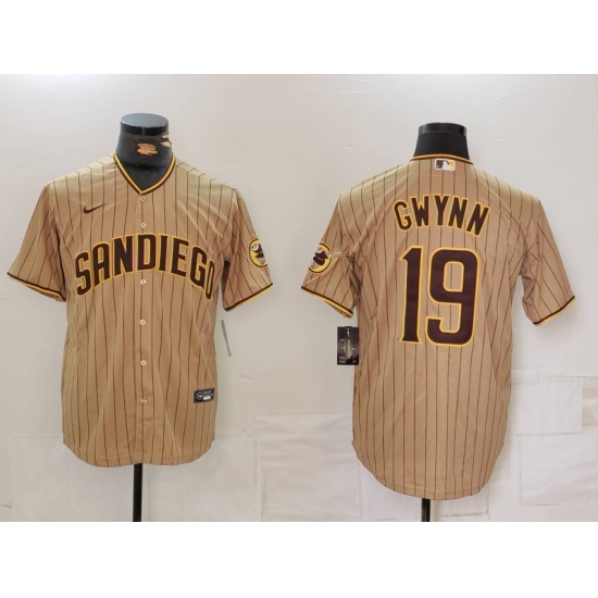 Men's San Diego Padres #19 Tony Gwynn Khaki Team Logo Stitched Cool Base Nike Jersey