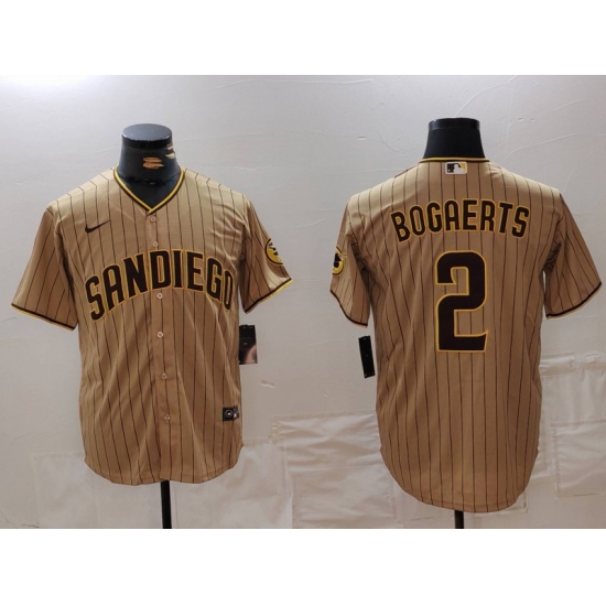>Men's San Diego Padres #2 Xander Bogaerts Khaki Cool Base Stitched Jersey