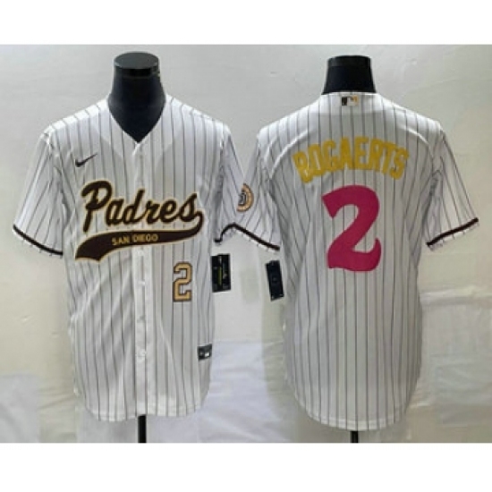 Men's San Diego Padres #2 Xander Bogaerts Tan Pinstripe 2023 City Connect Cool Base Stitched Jersey1