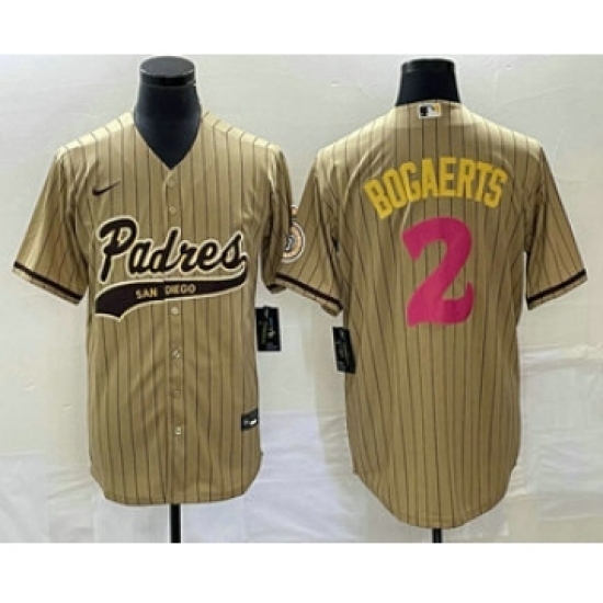 Men's San Diego Padres #2 Xander Bogaerts Tan Pinstripe 2023 City Connect Cool Base Stitched Jersey 1