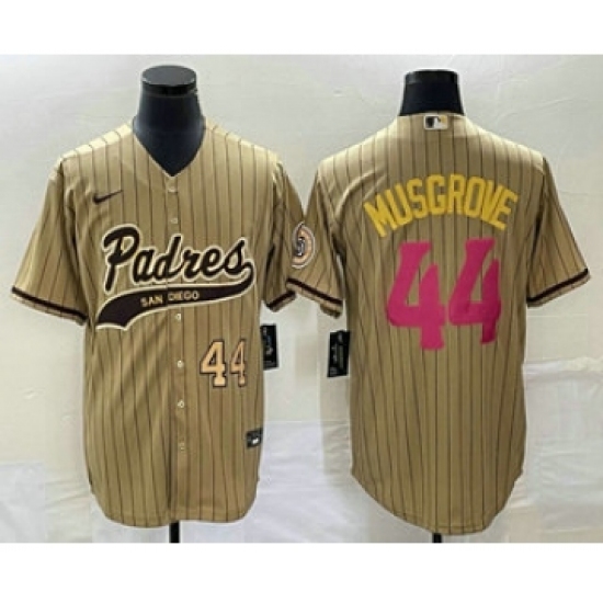 Men's San Diego Padres #44 Joe Musgrove Number Tan Pinstripe 2023 City Connect Cool Base Stitched Jersey