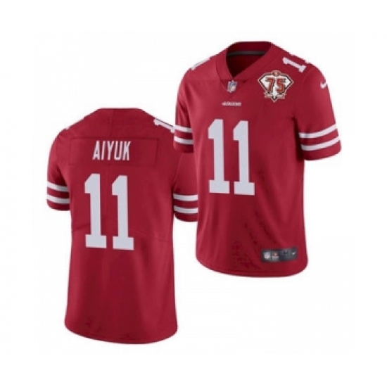 >Men's San Francisco 49ers #11 Brandon Aiyuk Red 2021 75th Anniversary Vapor Untouchable Limited Jersey