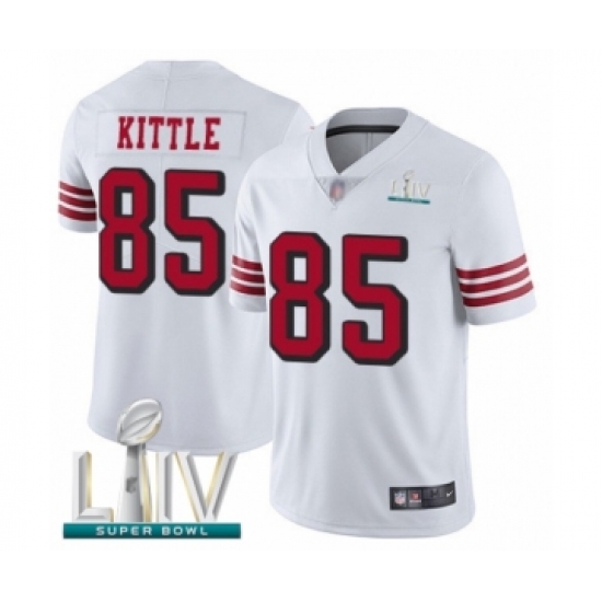 >Men's San Francisco 49ers #85 George Kittle Limited White Rush Vapor Untouchable Super Bowl LIV Bound Football Jersey