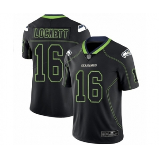 >Men's Seattle Seahawks #16 Tyler Lockett Limited Lights Out Black Rush Football Jersey