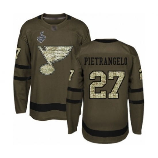 >Men's St. Louis Blues #27 Alex Pietrangelo Authentic Green Salute to Service 2019 Stanley Cup Final Bound Hockey Jersey