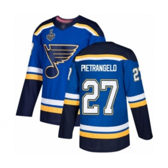 >Men's St. Louis Blues #27 Alex Pietrangelo Authentic Royal Blue Home 2019 Stanley Cup Final Bound Hockey Jersey