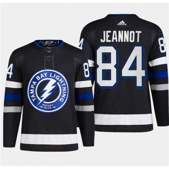 >Men's Tampa Bay Lightning #84 Tanner Jeannot Black 2024 Stadium Series Stitched Jersey