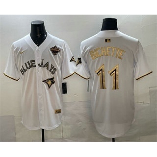 Men's Toronto Blue Jays #11 Bo Bichette White Gold 2025 American League Champions Limited Stitched Jersey