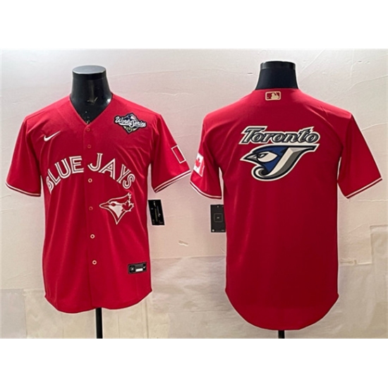 Men's Toronto Blue Jays Team Big Logo Red 2025 World Series Home Cool Base Stitched Baseball Jersey
