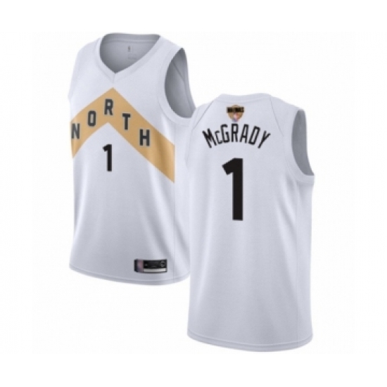 >Men's Toronto Raptors #1 Tracy Mcgrady Swingman White 2019 Basketball Finals Bound Jersey - City Edition