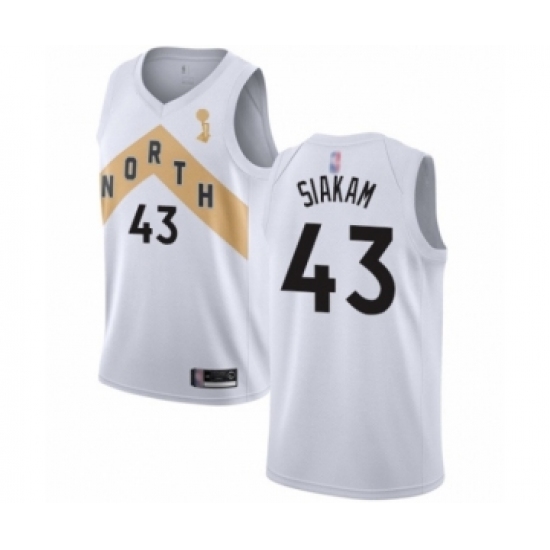>Men's Toronto Raptors #43 Pascal Siakam Swingman White 2019 Basketball Finals Champions Jersey - City Edition