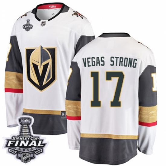 Men's Vegas Golden Knights #17 Vegas Strong Authentic White Away Fanatics Branded Breakaway 2018 Stanley Cup Final NHL Jersey