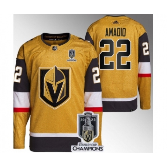 >Men's Vegas Golden Knights #22 Michael Amadio Gold 2023 Stanley Cup Champions Stitched Jersey
