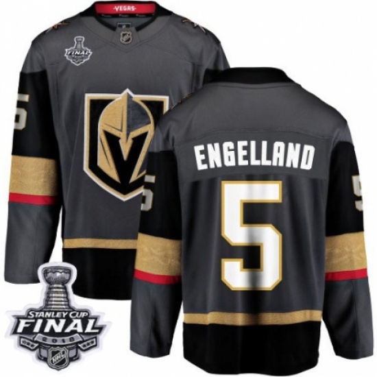 >Men's Vegas Golden Knights #5 Deryk Engelland Authentic Black Home Fanatics Branded Breakaway 2018 Stanley Cup Final NHL Jersey