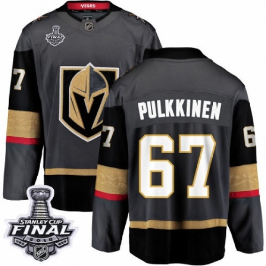 >Men's Vegas Golden Knights #67 Teemu Pulkkinen Authentic Black Home Fanatics Branded Breakaway 2018 Stanley Cup Final NHL Jersey
