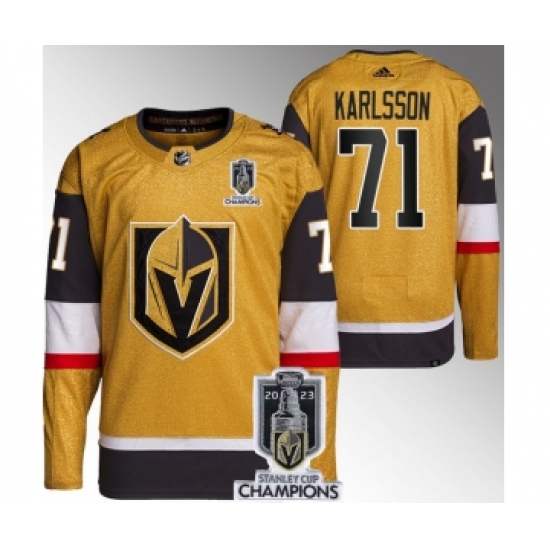 Men's Vegas Golden Knights #71 William Karlsson Gold 2023 Stanley Cup Champions Stitched Jersey
