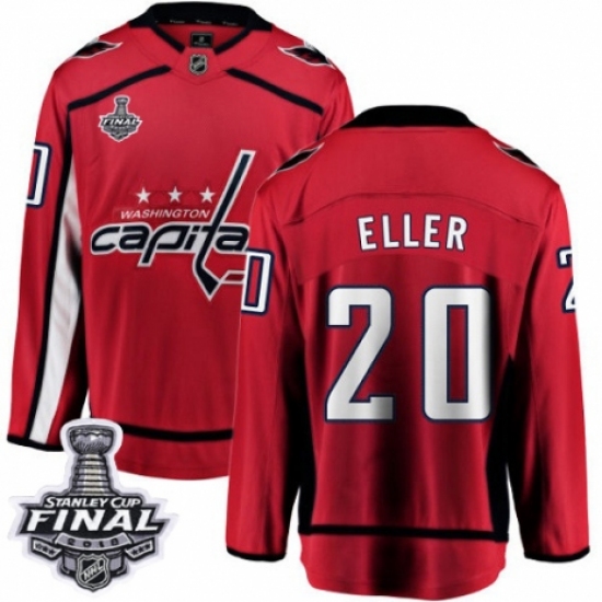 Men's Washington Capitals #20 Lars Eller Fanatics Branded Red Home Breakaway 2018 Stanley Cup Final NHL Jersey