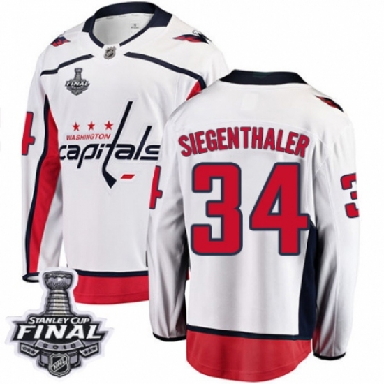 Men's Washington Capitals #34 Jonas Siegenthaler Fanatics Branded White Away Breakaway 2018 Stanley Cup Final NHL Jersey