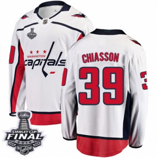 Men's Washington Capitals #39 Alex Chiasson Fanatics Branded White Away Breakaway 2018 Stanley Cup Final NHL Jersey