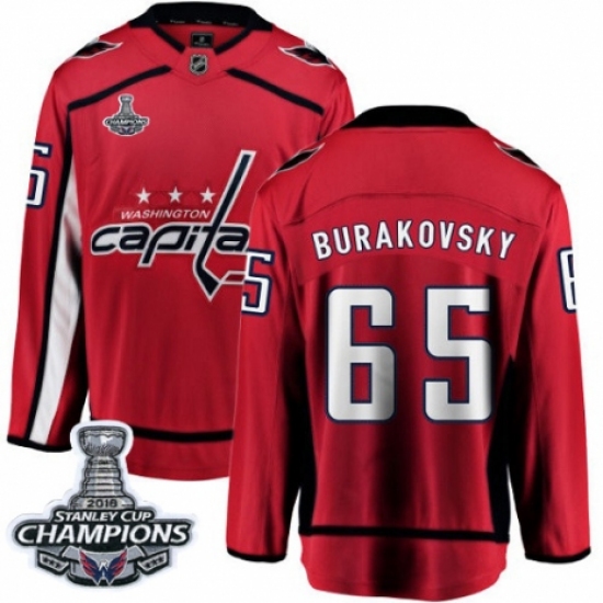 >Men's Washington Capitals #65 Andre Burakovsky Fanatics Branded Red Home Breakaway 2018 Stanley Cup Final Champions NHL Jersey