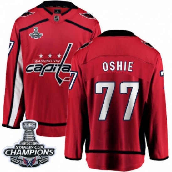 >Men's Washington Capitals #77 T.J. Oshie Fanatics Branded Red Home Breakaway 2018 Stanley Cup Final Champions NHL Jersey