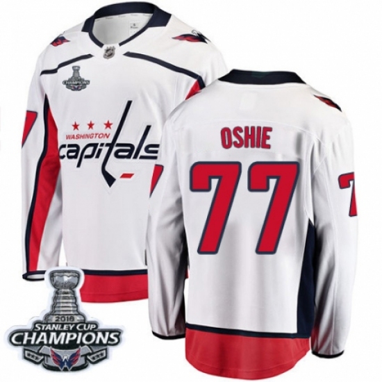 >Men's Washington Capitals #77 T.J. Oshie Fanatics Branded White Away Breakaway 2018 Stanley Cup Final Champions NHL Jersey