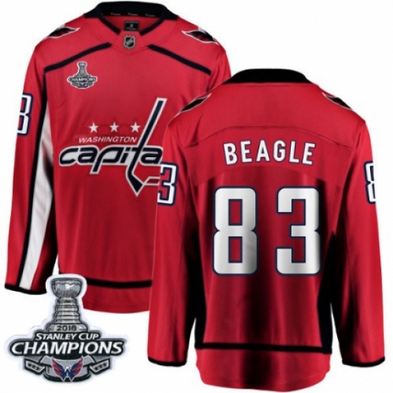 >Men's Washington Capitals #83 Jay Beagle Fanatics Branded Red Home Breakaway 2018 Stanley Cup Final Champions NHL Jersey