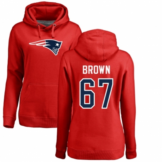 NFL Women's Nike New England Patriots #67 Trent Brown Red Name & Number Logo Pullover Hoodie
