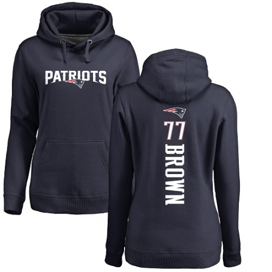 >NFL Women's Nike New England Patriots #77 Trent Brown Navy Blue Backer Pullover Hoodie